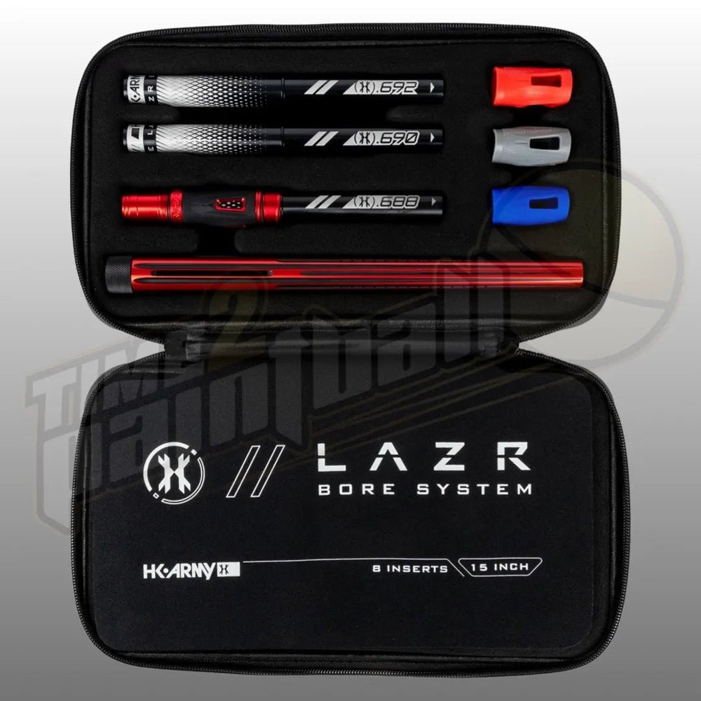 The LAZR Elite "Fossil" Barrel Kit comes complete with 8 Barrel Bore Inserts, an Elite Barrel Tip, Bore Sizer and 4 interchangeable Accent Grips. The LAZR Elite Barrel Kit is packaged with an HK Army EXO Barrel Protective Case.