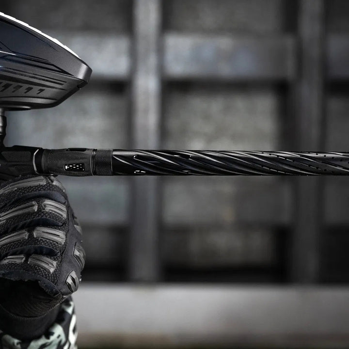 Featuring exterior-fluted milling and precision-honed barrel tip, the "Orbit" LAZR Elite Barrel Kit makes a stellar enhancement to your marker aesthetic while delivering ball-on-ball accuracy with reduced sound signature. With 8 bore inserts to choose from, simply size your paintballs with the included bore sizer and slide the perfectly matched bore insert into the barrel back.